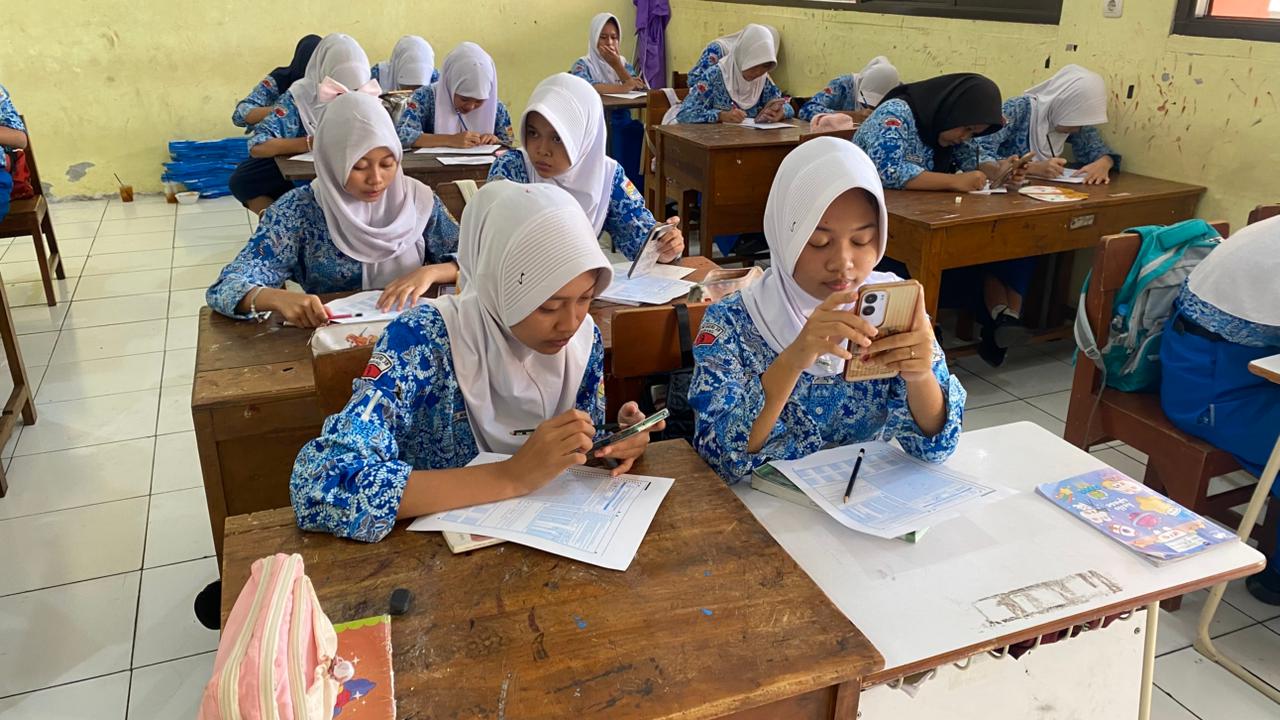 Pada pelaksanaan perdana ini, siswa mengerjakan soal menggunakan handphone (HP) masing-masing. Guru pengawas membagikan link akses kepada peserta didik sebagai sarana untuk mengerjakan soal secara daring.